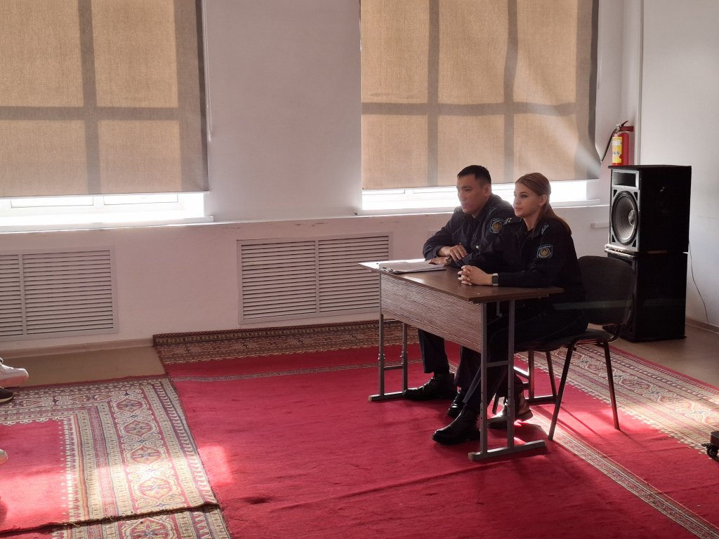 Білім алушылармен кездесу барысында ювеналды полиция қызметкерлері отбасылық-тұрмыстық саладағы зорлық-зомбылық көріністерінің алдын алуға бағытталған профилактикалық әңгіме өткізді. Оқушыларға олардың құқықтары мен міндеттері, отбасылық-тұрмыстық зорлық-зомбылықтың негізгі нысандары, сондай-ақ құқыққа қайшы әрекеттер жасағаны үшін жауапкершілік шаралары түсіндірілді.